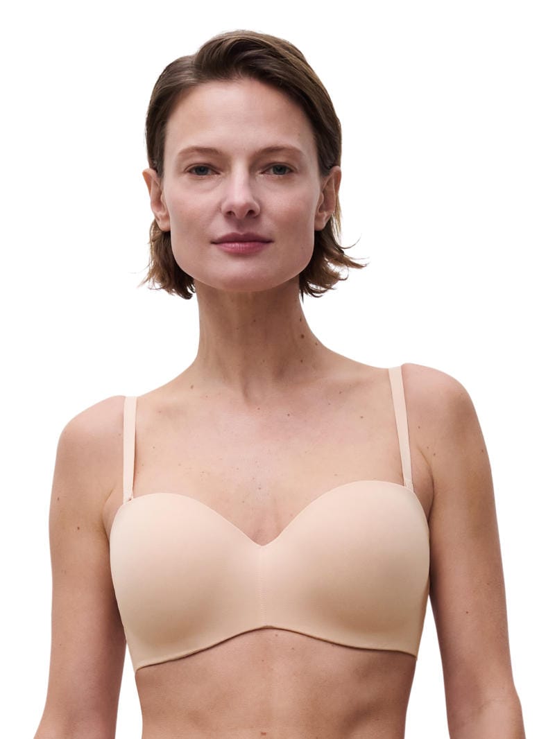 Description: Norah Strapless T-shirt Bra by Chantelle Easy Feel is an underwired bra with a moulded cup that has removable straps, to convert to strapless.