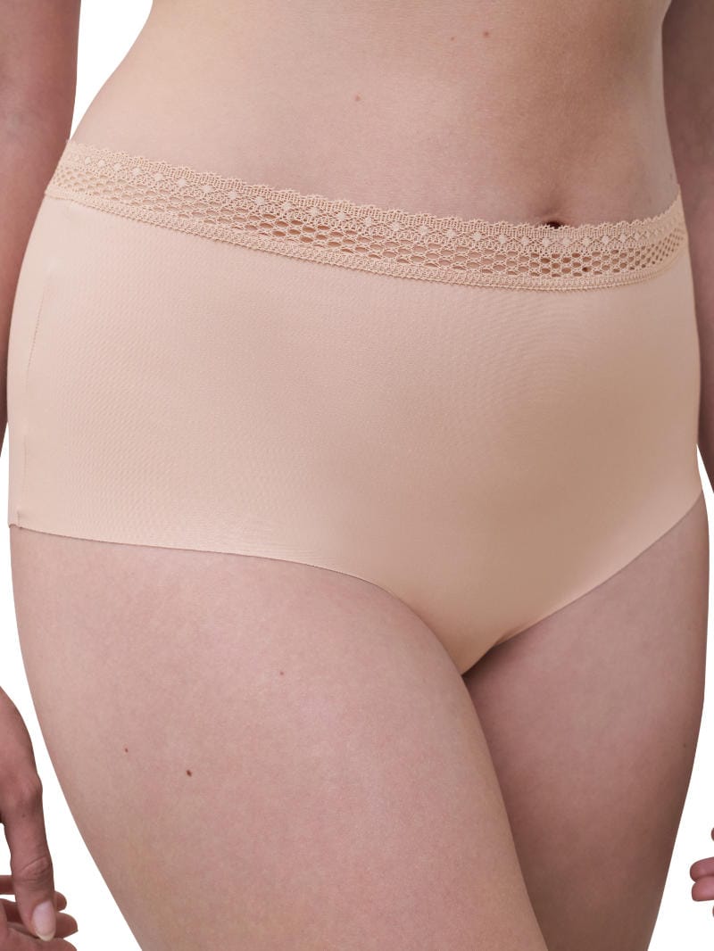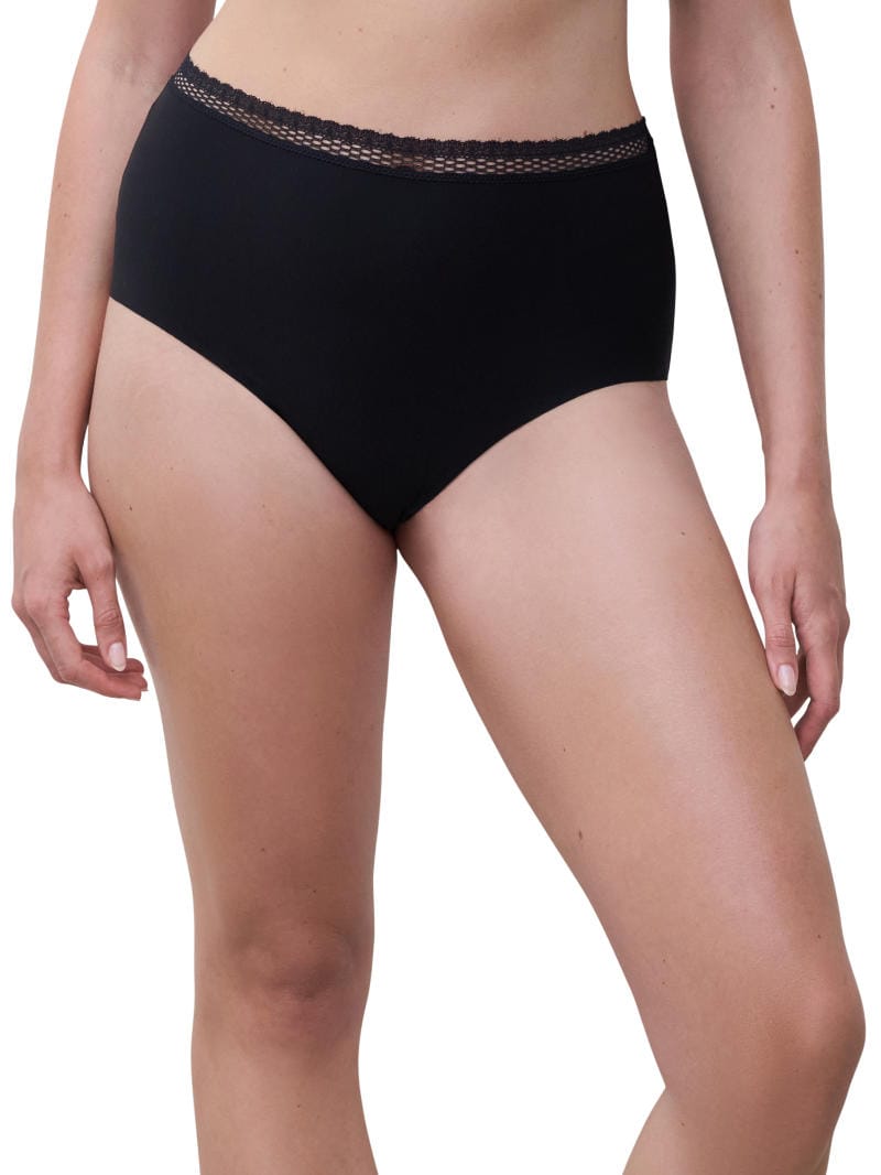 Description: Cozy Chic High Waisted Brief by Chantelle is a soft and breathable modal fabric brief which is opaque front and rear. In a reassuring high waisted style, it features invisible laser cut finishes around the legs and there is a recycled lace trim around the waist.