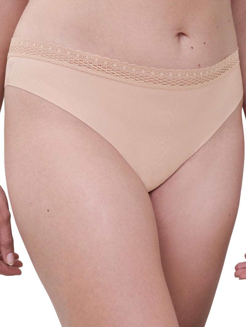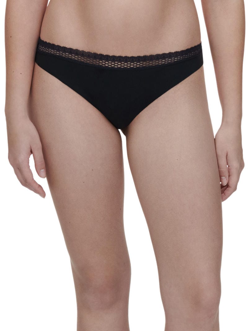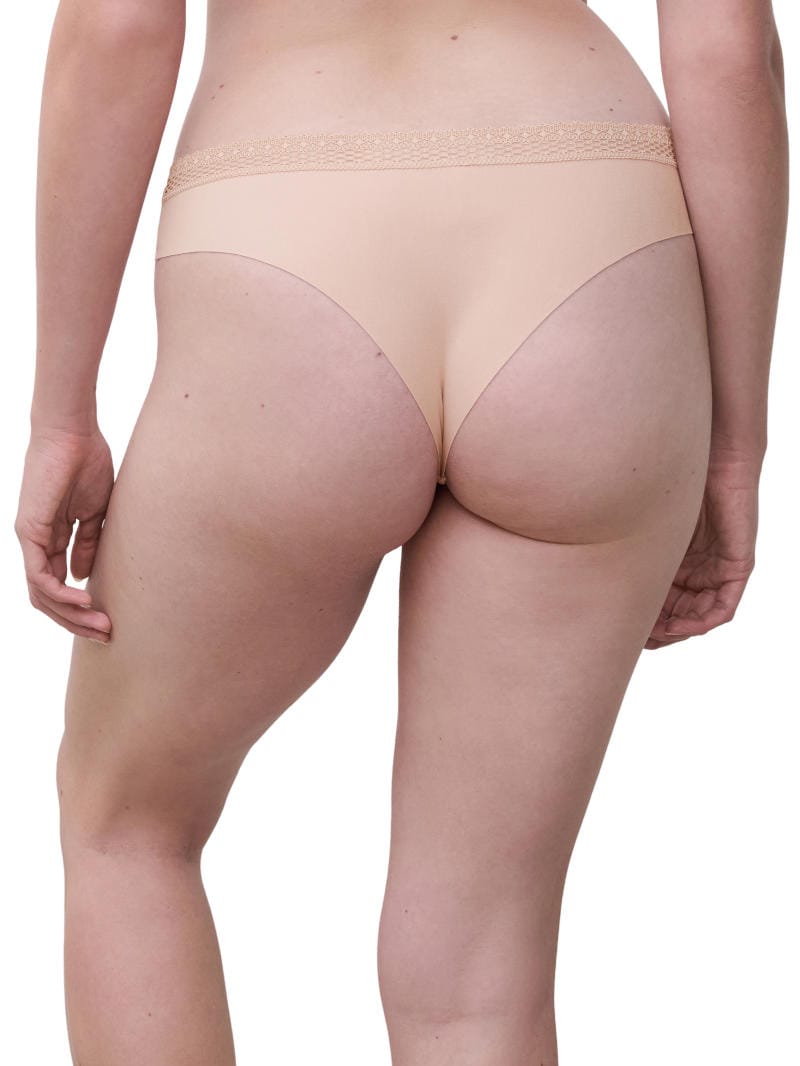 Description: Cozy Chic Tanga by Chantelle is a soft and breathable modal fabric brief which is opaque front and rear. In a sexy, thong style shape, it features invisible laser cut finishes around the legs and there is a recycled lace trim around the waist.