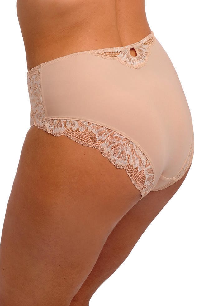 Description: Emmaline Full Brief by Fantasie is a fuller coverage brief with delicate multi-tone lace at the back leg opening and front waist.
