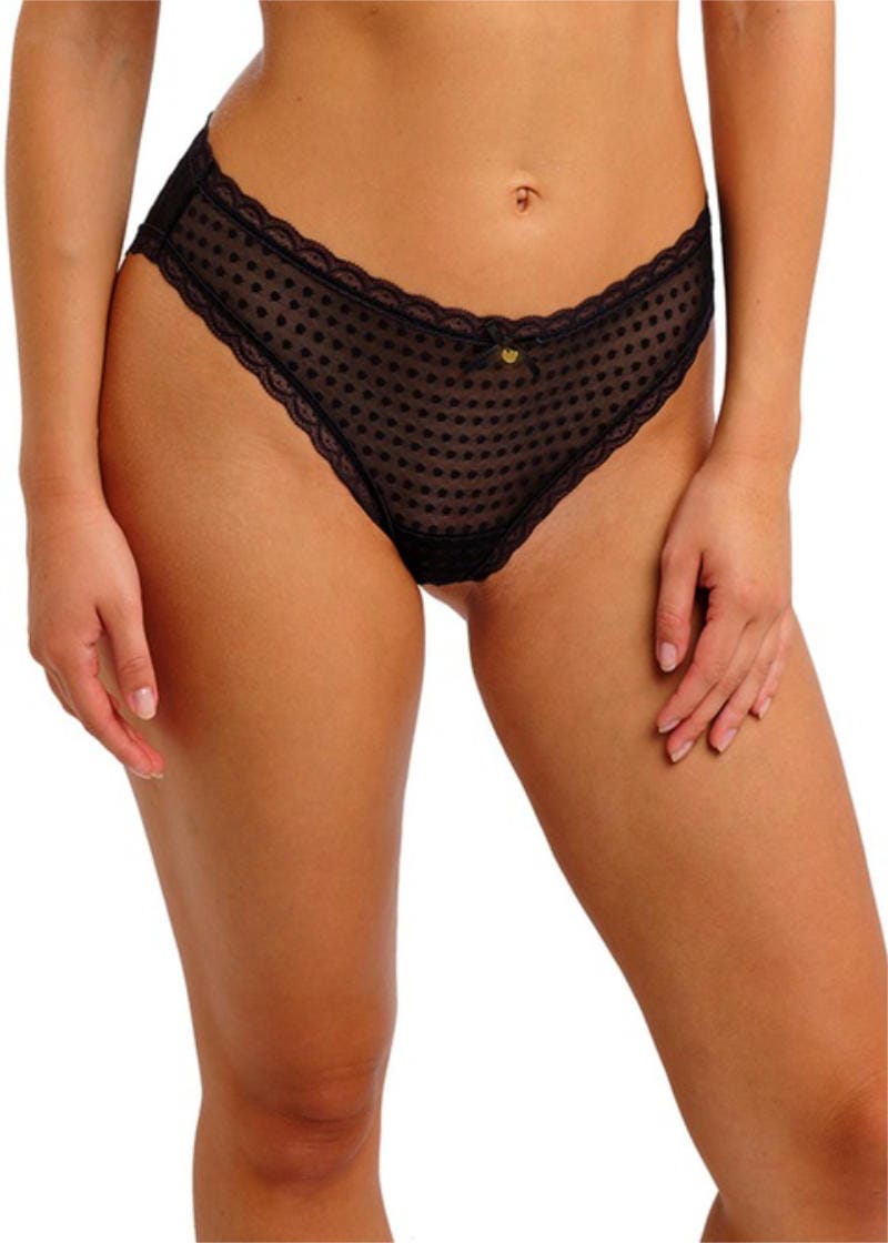Description: Spotlight Brief by Freya is a covering brief with an all-over sheer spot mesh design. There is a stretch lace trim at the leg edges and waist.