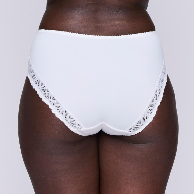 Description: Salerno Full Brief by Prima Donna is a high waist style brief with a lace trim at the waist. The rear is decorated with flat lace for a smooth line under clothing.