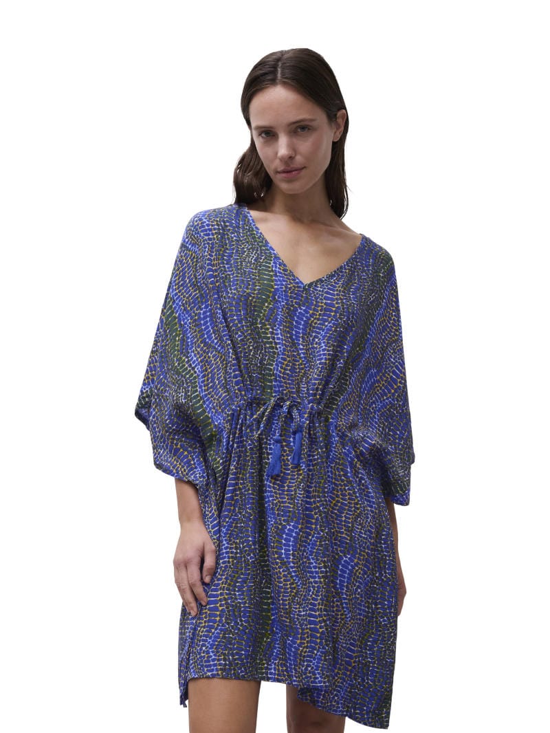 Description: Syros Kaftan by Femilet Swim is a short sleeved kaftan with a v-neck, made from a soft, lightweight and floaty viscose material.